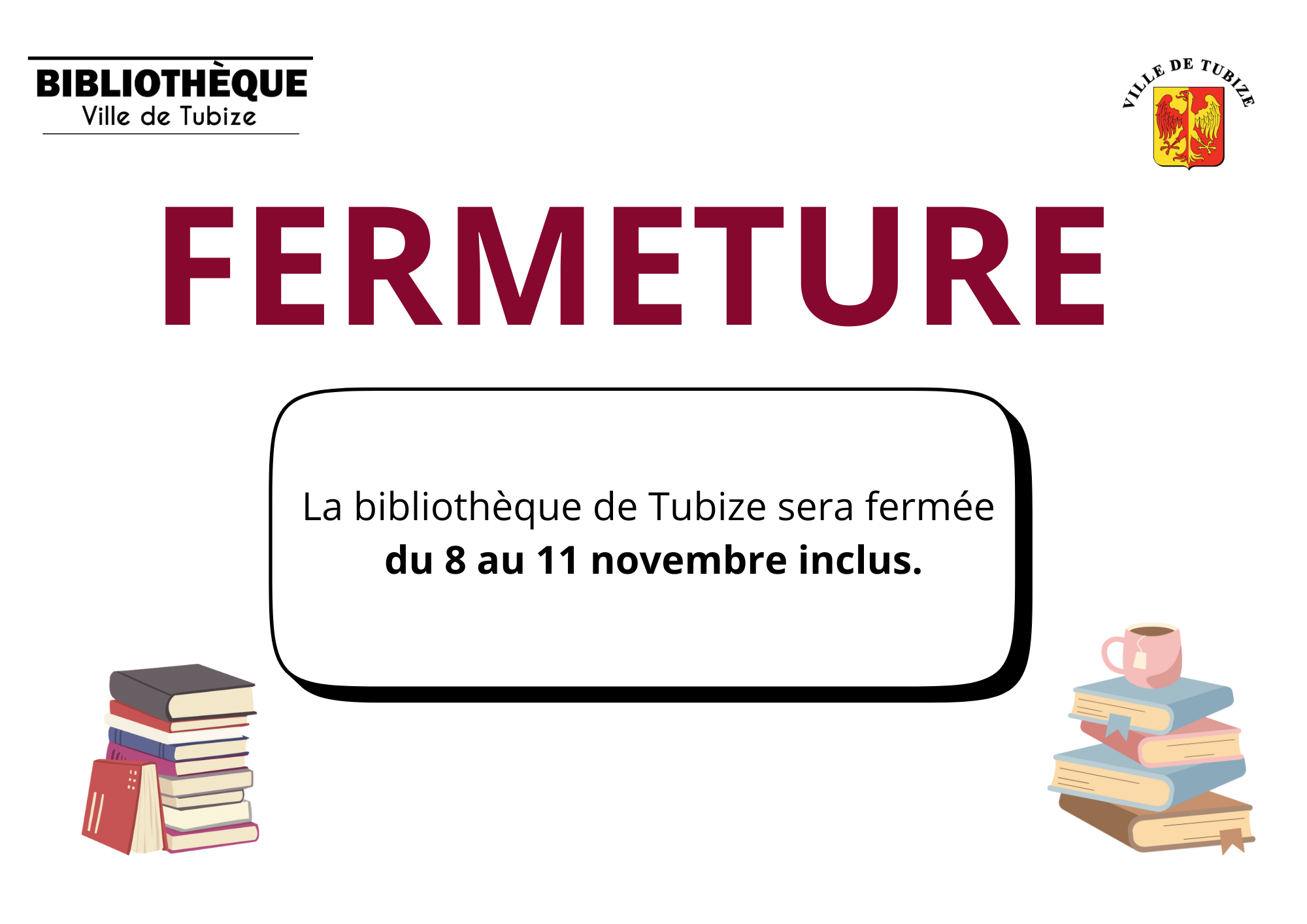 La bibliothèque de Tubize sera fermée du 8 au 11 novembre inclus.